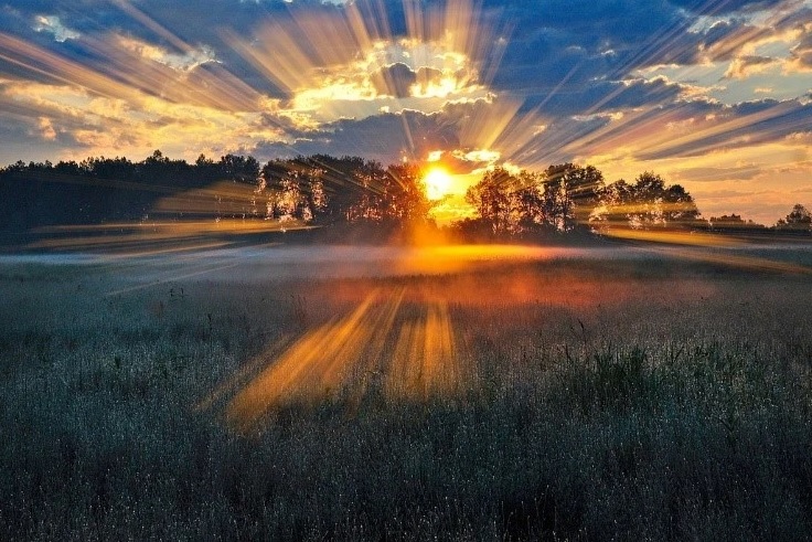 С рассветом тьма ночи светлеет. Небо становится голубым